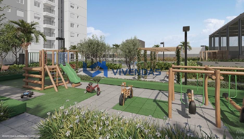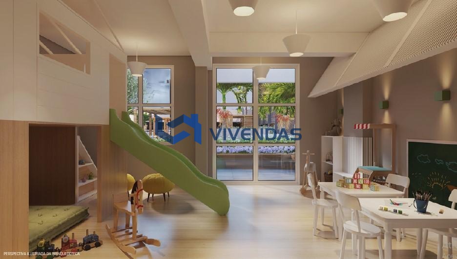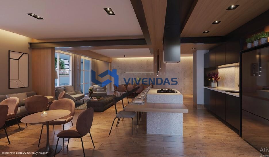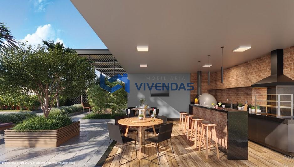 O apartamento já vem equipado com bancada, cuba, torneira, churrasqueira e coifa.