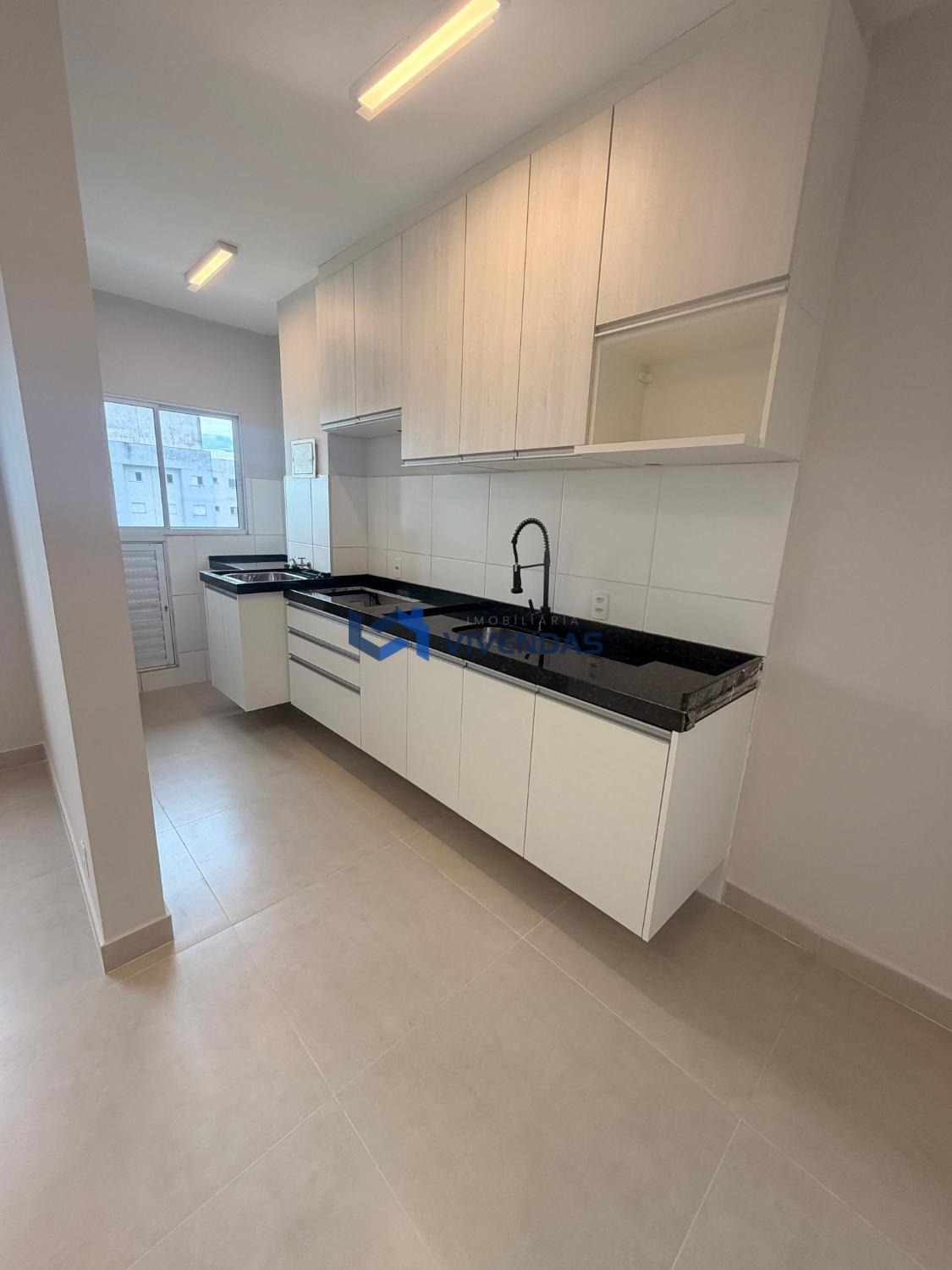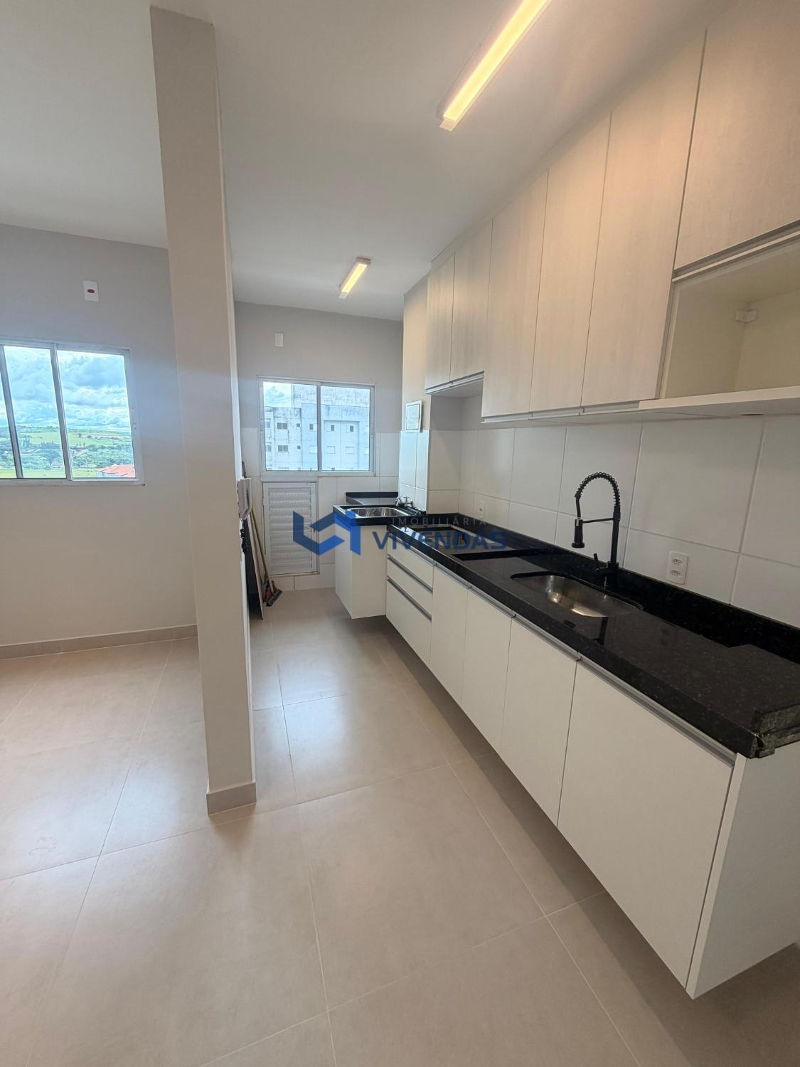 Apresenta sala ampla, cozinha planejada conjugada com área de serviço 2 dormitórios, 1 banheiro social com gabinete e box, e 1 vaga de garagem.