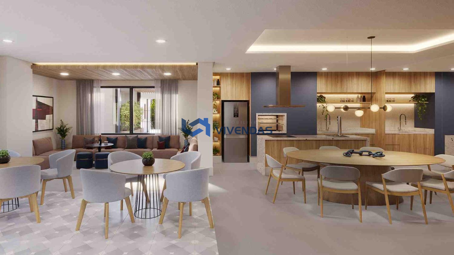 Condomínio terá uma excelente área de lazer com piscina adulto e infantil, playground, estacionamento para visitantes, área verde, praça, mini mercado, academia, bar na piscina, solarium, coworking, pet place, quadra de beach tennis e salão de festas.
