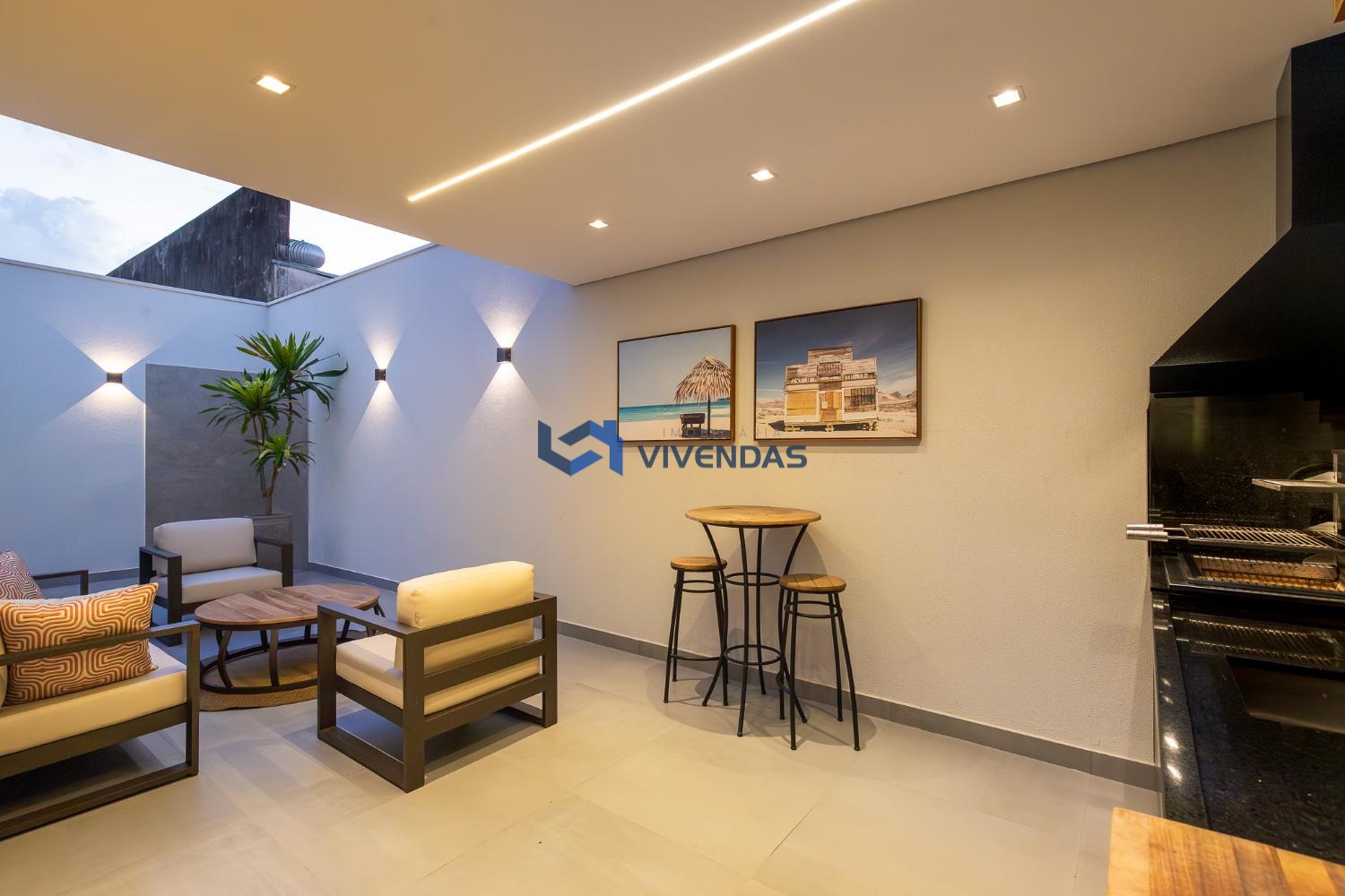 A área gourmet oferece churrasqueira a carvão, bancada e ducha, ideal para receber amigos e família. Suíte com closet, ar-condicionado e banheiro com ducha dupla. A casa ainda dispõe de projeto de iluminação em LED e sistema de aquecimento solar.