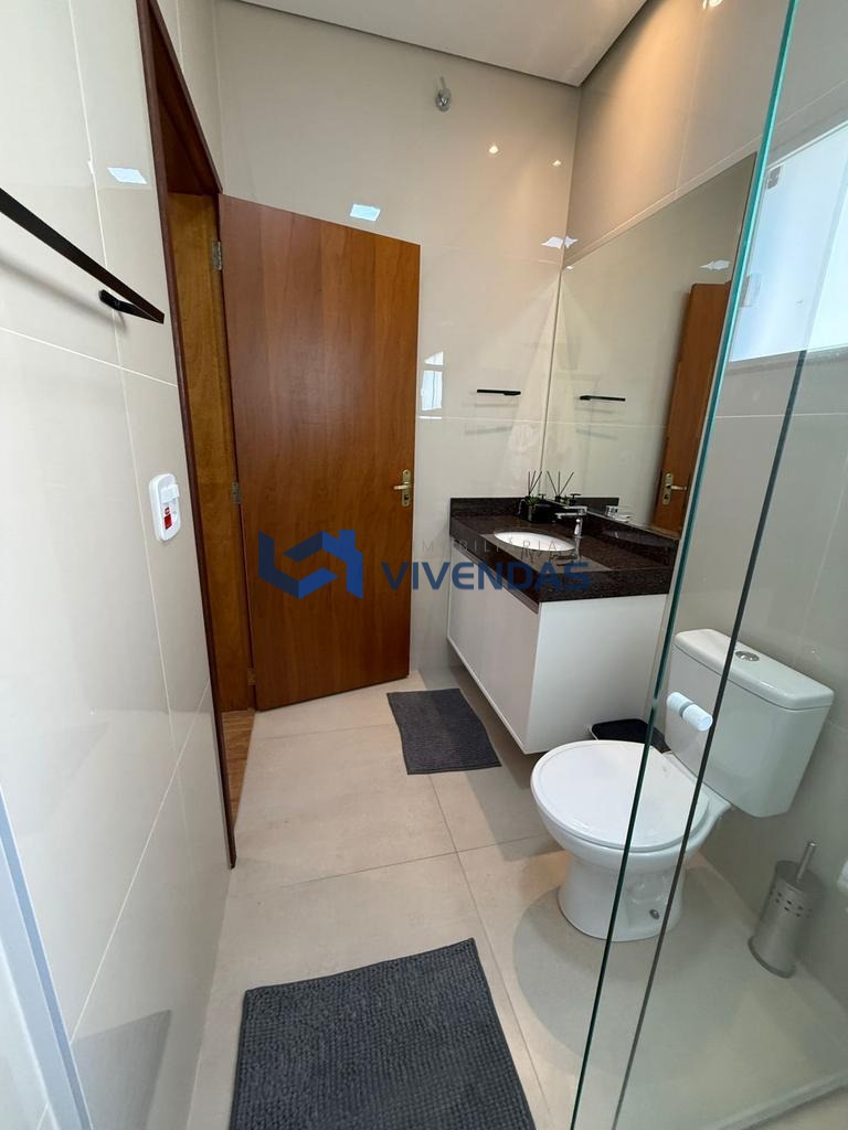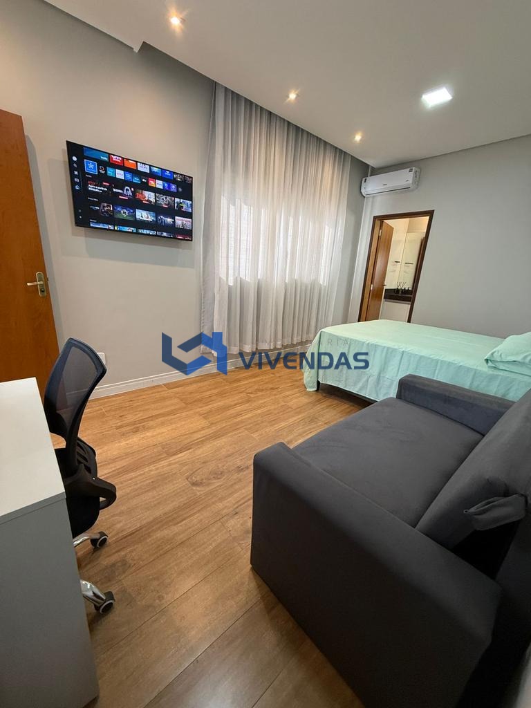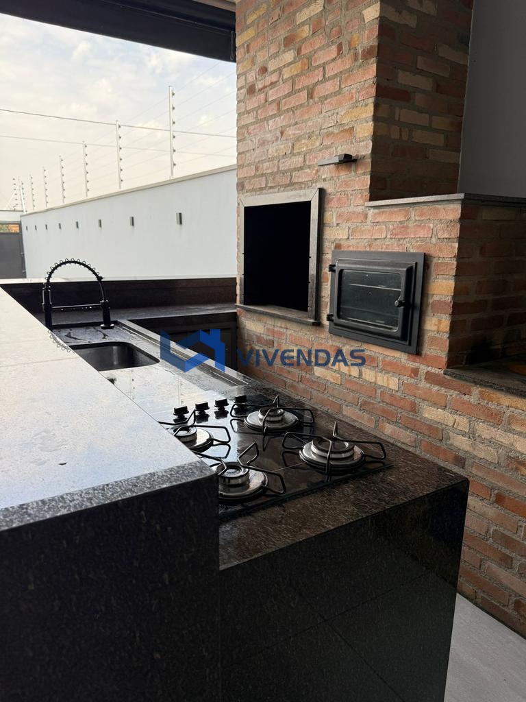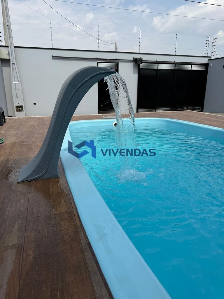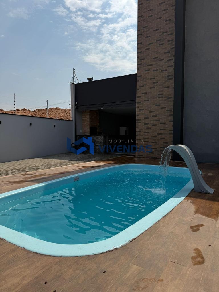Conta com sala ampla, 2 dormitórios sendo 1 suíte com ar condicionado, banheiro social, lavabo, cozinha gourmet com cooktop, forno elétrico e churrasqueira, quintal amplo com piscina e cascata.